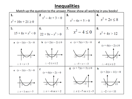 Quadratic Inequality And Simultaneous Inequality Worksheets Teaching Resources